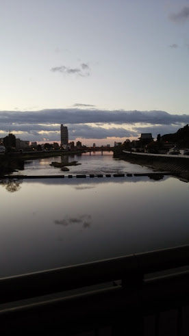 (『ジョジョ』的にはS市杜王町の一級河川@朝焼けの時刻)