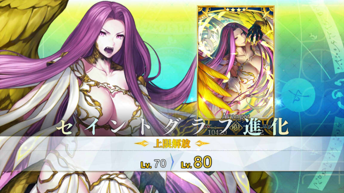 今回のイベントで霊基再臨(Lv上限開放)素材もだいぶ手に入ったので、ゴルゴーンさんも最終霊基再臨完了。