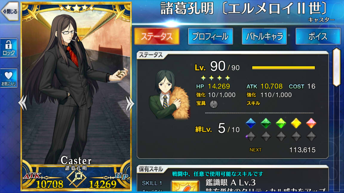 諸葛孔明さんを育てよう作戦も進めていて、とりあえずLv.90になりました。